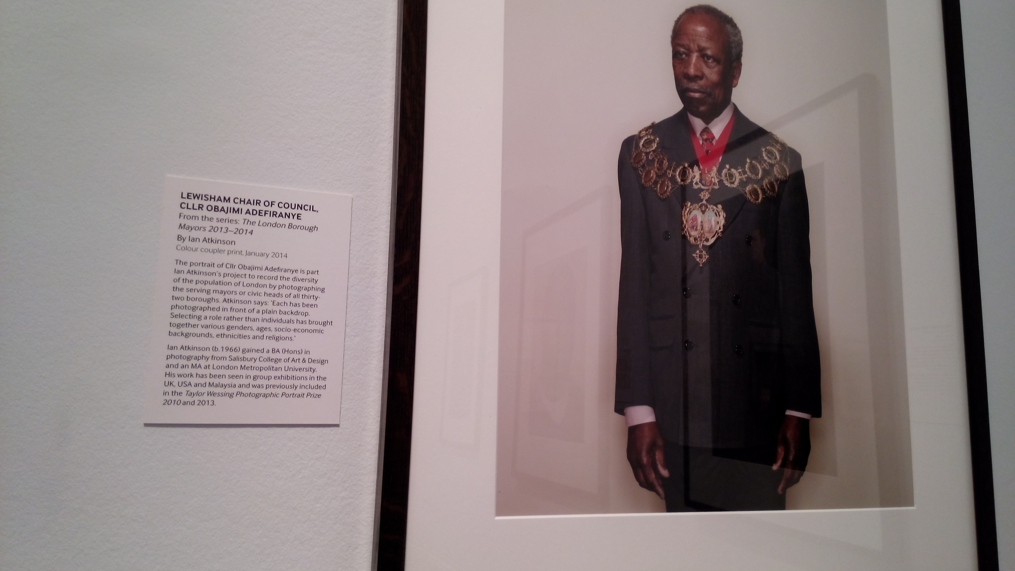 This image above by Ian Atkinson was also a finalist entry in KL International Photoawards 2014 and was exhibited in Kuala Lumpur in August 2014. (Lewisham Chair of Council, Cllr, Obajimi Adefiranye, from series The London Borough Mayors 2013-2014)